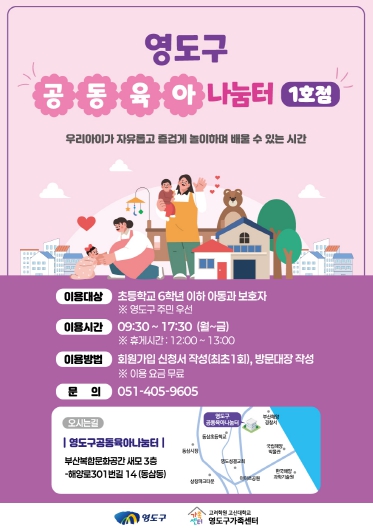 한편, 영도구는 이번 공동육아나눔터 조성을 계기로 지역 돌봄 인프라 확충, 부모 네트워크 강화 및 참여 확대 등 양육 친화 환경 기반을 지속적으로 확충해 나갈 방침이다.