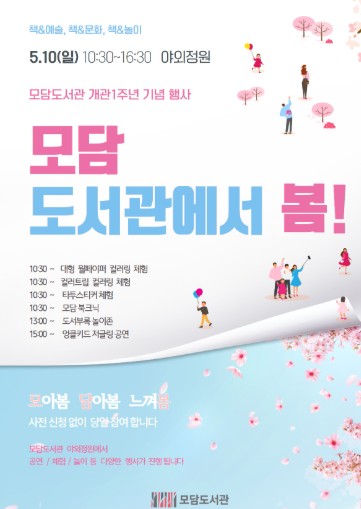 모담도서관 관계자는 “개관 1주년을 맞아 책을 중심으로 문화·예술·놀이가 어우러진 프로그램을 준비했다”며 “앞으로도 시민들이 일상 속에서 책과 함께 다양한 경험을 누릴 수 있는 열린 복합문화공간으로 자리매김하겠다”고 밝혔다.