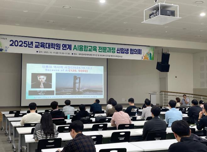 [뉴스앤톡] 경북교육청은 17일 구미시에 있는 새마을운동테마공원 연수관에서 AI융합교육 전문과정 신입생 45명을 비롯해 졸업생과 관계자 등 60여 명이 참석한 가운데 ‘2025년 교육대학원 연계 AI융합교육 전문과정 신입생 협의회’를 개최했다고 밝혔다.
