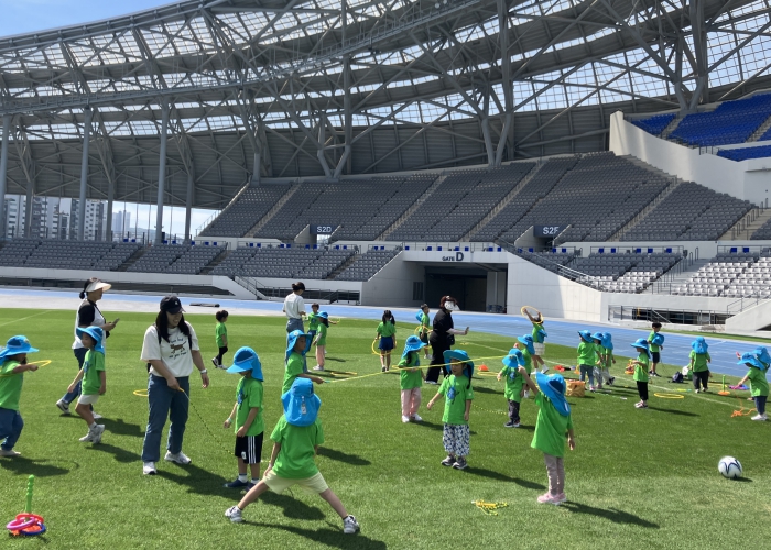 | ▲ 용인미르스타디움, 영·유아 대상 천연잔디 무료체험 성료 |