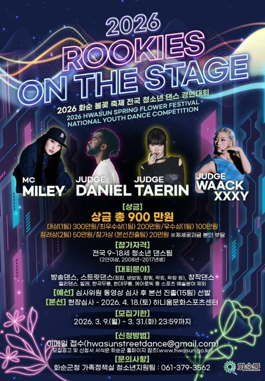 [뉴스앤톡] 화순군은 오는 4월 18일 '2026 화순 봄꽃 축제'의 화려한 시작을 알리는 ‘제3회 전국 청소년 댄스 경연 대회’ 본선을 개최한다고 밝혔다.