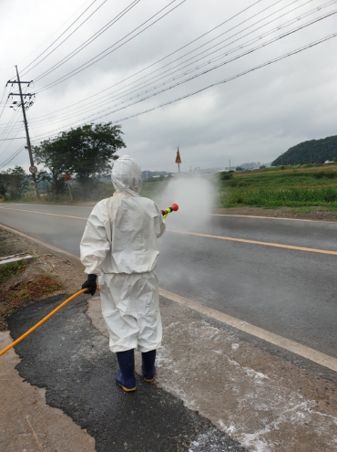 시는 방역차량 8대를 투입해 인근 가금농가와 산란계밀집단지 진입로 소독 등 방역조치를 강화하고 밀집단지 주변 농 경운작업을 실시한다.