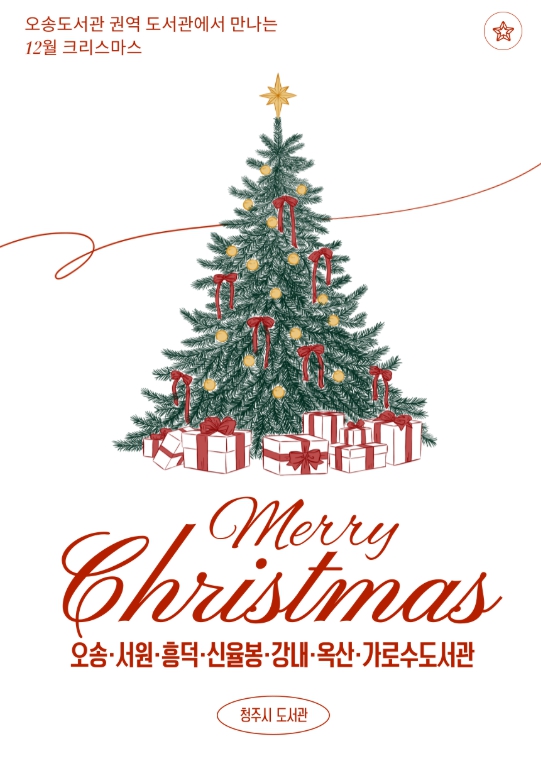 [뉴스앤톡] 청주시 오송도서관 권역 7개관(오송·서원·흥덕·신율봉·강내·옥산·가로수도서관)은 크리스마스 시즌을 맞아 12월 한 달 동안 다채로운 문화행사를 진행한다.