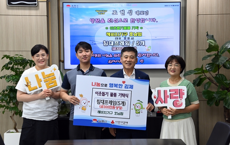 [뉴스앤톡] 김제시는 해비치가구 호남점(대표 조현성)이 지역 내 저소득층 가정을 위해 총 300만원 상당의 침대프레임 5개를 기탁했다고 19일 밝혔다.