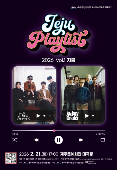 [뉴스앤톡] 제주특별자치도 문화예술진흥원은 2026년 신년을 맞아 젊은 세대가 선호하는 뮤지션을 초청한 기획공연 ‘JEJU PLAYLIST 2026 VOL.1 지금’을 오는 2월 21일 오후 5시 문예회관 대극장에서 개최한다고 밝혔다.