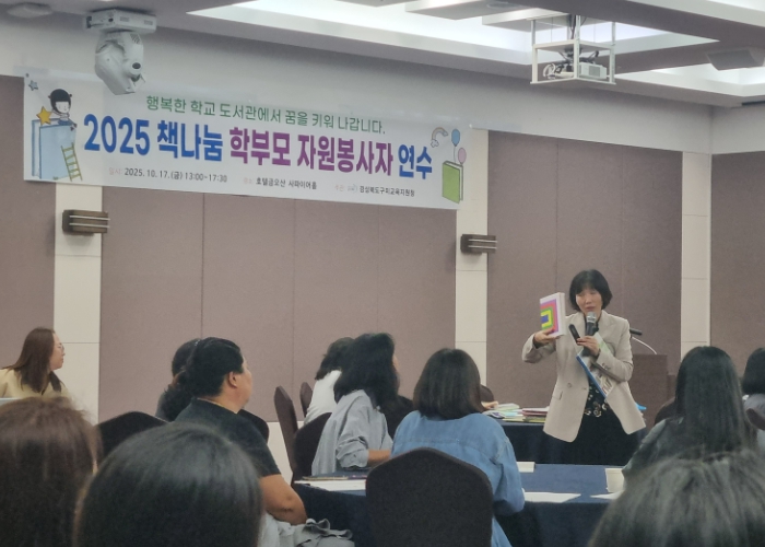 [뉴스앤톡] 경상북도구미교육지원청은 10월 17일 호텔 금오산 별관 1층 사파이어홀에서 구미지역 초・중 학교도서관 학부모자원봉사자 50여 명을 대상으로 책나눔 학부모자원봉사자 역량 강화 연수를 실시했다.