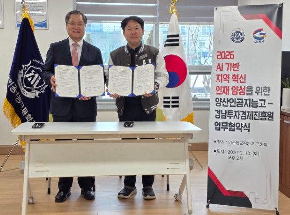 [뉴스앤톡] 경남투자경제진흥원(원장 오재호)와 양산인공지능고등학교(교장 강경모)는 지역 사회의 미래를 이끌어갈 인공지능(AI) 기술 인재를 공동으로 육성하고, 청년들의 성공적인 사회 진출을 돕기 위해 업무협약(MOU)을 체결했다.