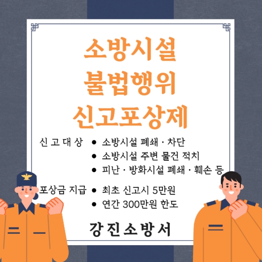 [뉴스앤톡] 강진소방서는 화재 발생 시 시민의 안전을 크게 위협하는 소방시설 불법행위를 근절하기 위해 ‘소방시설 불법행위 신고포상제’를 적극 홍보하고 있다고 25일 밝혔다.