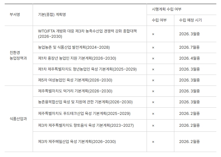 | ▲ 친환경농업정책과·식품산업과 소관 시행계획 수립 현황 |
