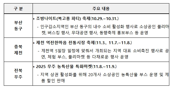 이를 위해 지역별 특성과 수요를 반영한 맞춤형 행사와 연속(릴레이) 캠페인을 전국적으로 추진해, 소비 심리를 진작하고 내수 회복의 흐름을 강화해 나갈 방침이다.