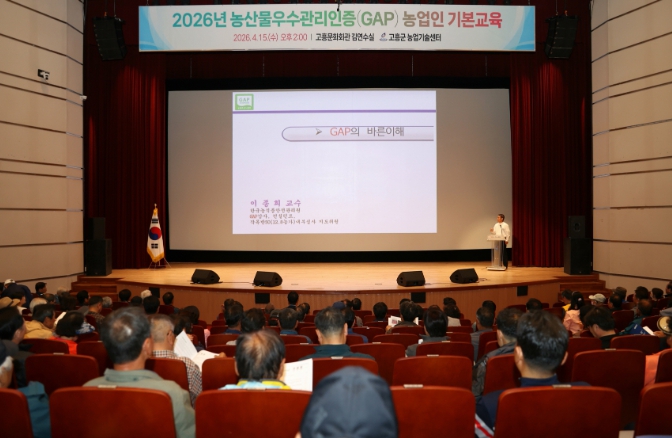 [뉴스앤톡] 고흥군은 지난 15일 고흥문화회관 김연수실에서 지역 농업인 344명이 참석한 가운데 2026년 농산물우수관리(GAP) 인증 농업인 기본교육을 실시했다고 밝혔다.