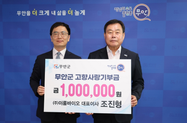 [뉴스앤톡] 전남 무안군은 ㈜이룸바이오 조진형 대표이사로부터 지난 20일 지역사회 발전과 나눔문화 확산을 위해 고향사랑기부금 100만원을 기탁받았다.
