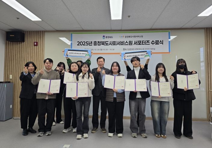 [뉴스앤톡] 충청북도사회서비스원(이장희 원장)은 12월 22일 오후 3시 30분, 충청북도사회서비스원 회의실에서 2025년 서포터즈 수료식을 개최했다.