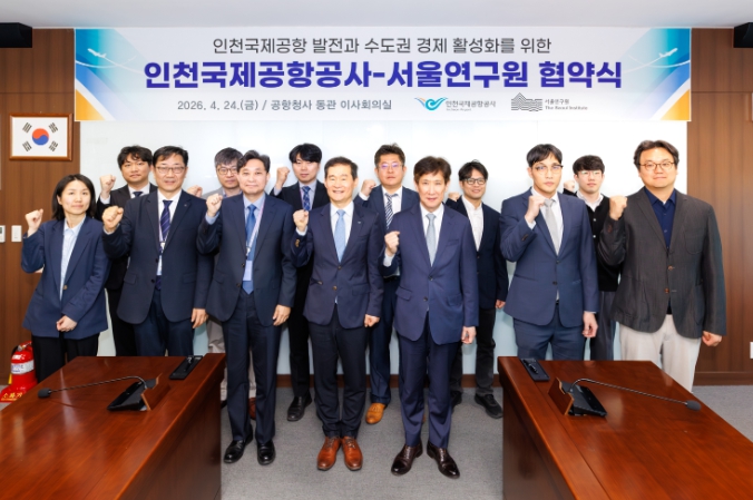 [뉴스앤톡] 인천국제공항공사는 지난 24일 청사 회의실에서 서울연구원과 ‘상호협력 및 연구 네트워크 강화를 위한 업무협약’을 체결했다고 26일 밝혔다.