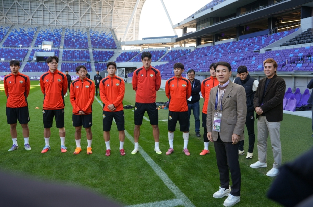 [뉴스앤톡] 김진태 강원특별자치도지사(구단주)는 11월 3일 오후 3시, 일본 히로시마 에디온 피스 윙 스타디움을 방문해 아시아챔피언스리그 조별리그 원정경기를 앞두고 훈련 중인 강원FC 선수단을 격려하고 응원의 메시지를 전했다.