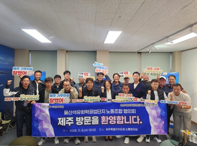 [뉴스앤톡] 제주특별자치도는 울산석유화학공업단지 노동조합협의회(의장 우영석)가 5일 제주도청을 방문해 고향사랑기부금을 전달했다고 밝혔다.
