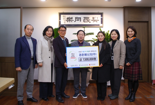 [뉴스앤톡] 남양주시는 13일 (주)경춘에너지(대표 전인권)가 지역 내 취약계층 지원을 위해 후원금 750만 원을 동부희망케어센터(센터장 신영미)와 수동면 지역사회보장협의체(위원장 박경숙)에 전달했다.