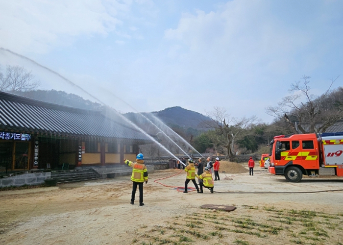 주요 훈련 내용으로는 소방차량을 동원한 화선 차단 및 방어선 구축, 주요 문화재 보호를 위한 집중 방수 작전이 전개됐다. 이와 함께 화재 발생 초기 '골든타임'을 확보할 수 있도록 사찰 관계자들을 대상으로 비상소화장치 활용법, 초기 진화 요령, 신속한 인명 대피 유도 교육도 병행 실시됐다. 아울러 현장 지휘체계 운영과 유관기관 간 실시간 상황 공유를 통한 입체적인 재난 대응 시스템도 함께 점검했다.