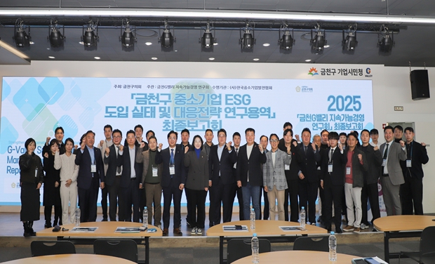 연구용역은 글로벌 공급망 규제 강화, EU 공급망 실사 지침(CSDDD) 시행 등으로 ESG가 중소기업에도 필수 경영 요소가 된 상황에서 G밸리 기업들이 실질적으로 적용 가능한 맞춤형 ESG 모델을 마련하기 위해 추진됐다.