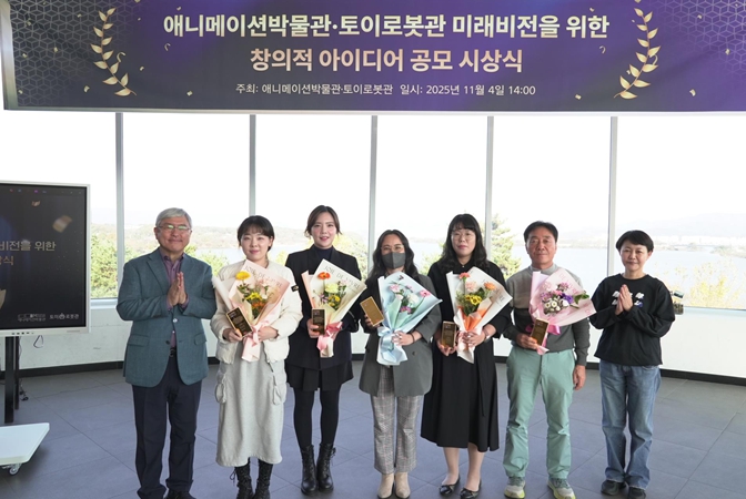 [뉴스앤톡] (재)강원정보문화산업진흥원에서 운영하고 있는 애니메이션박물관은 11월 4일 개관 22주년을 맞아 실시한 '애니메이션박물관과 토이로봇관의 미래 비전을 위한 창의적 아이디어 공모전'의 시상식을 개최했다.