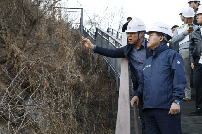[뉴스앤톡] 진교훈 서울 강서구청장이 20일 해빙기 안전사고 예방을 위해 직접 급경사지 안전점검에 나섰다.