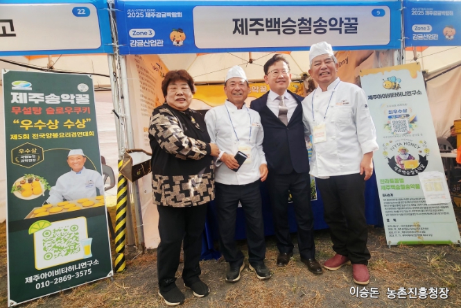 선정된 ‘제주송악벌꿀협의회’의 대표기업인 ㈜제주아이비타허니연구소(대표 백승철)가 11월 20일부터 24일까지 제주 서귀포농업기술센터(남원읍)에서 ‘2025 제주 감귤박람회’에서 ‘지소화성 쿠키’ 품평회를 개최하고 있다.