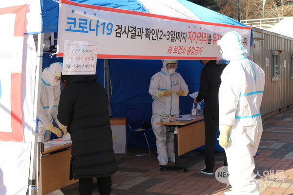 [뉴스앤톡] 기온이 크게 떨어지며 한파가 찾아온 30일 용인시 처인구 보건소 후문에 설치된 코로나19 임시선별진료소에서 시민들이 검사를 받고 있다.